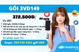 3VD149 Vinaphone, 6GB/ ngày, gọi, sms suốt 3 tháng