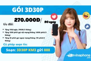 3D30P Vinaphone, ưu đãi 3 tháng, gọi – data thả ga