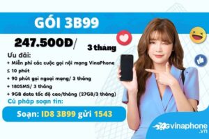 Đăng ký gói cước 3B99 Vinaphone, mỗi tháng bạn sẽ nhận được ưu đãi data, [...]