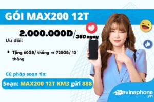 MAX200 12T Vinaphone, ưu đãi 720GB suốt 1 năm