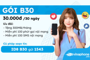 Đăng ký gói B30 Vinaphone với cước phí 30.000đ/tháng, thuê bao sẽ có ngay 100 phút gọi nội [...]
